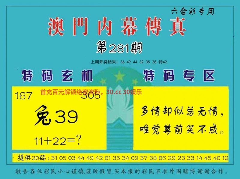 281期:🌼绝杀两合🌼【03+09】开羊47准 |